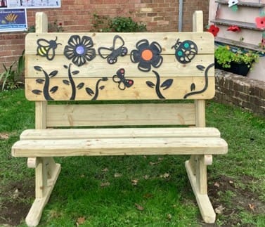 The Carpentry Department is a wonderful place for students to learn their chosen trade and they offered to kindly build a bench for us. On completion of the bench it was then sent to the Art Department for the art students to create a sight and sensory design for the bench and I am sure you will agree that the design chosen is a beautiful bench for the children of Upton to enjoy.