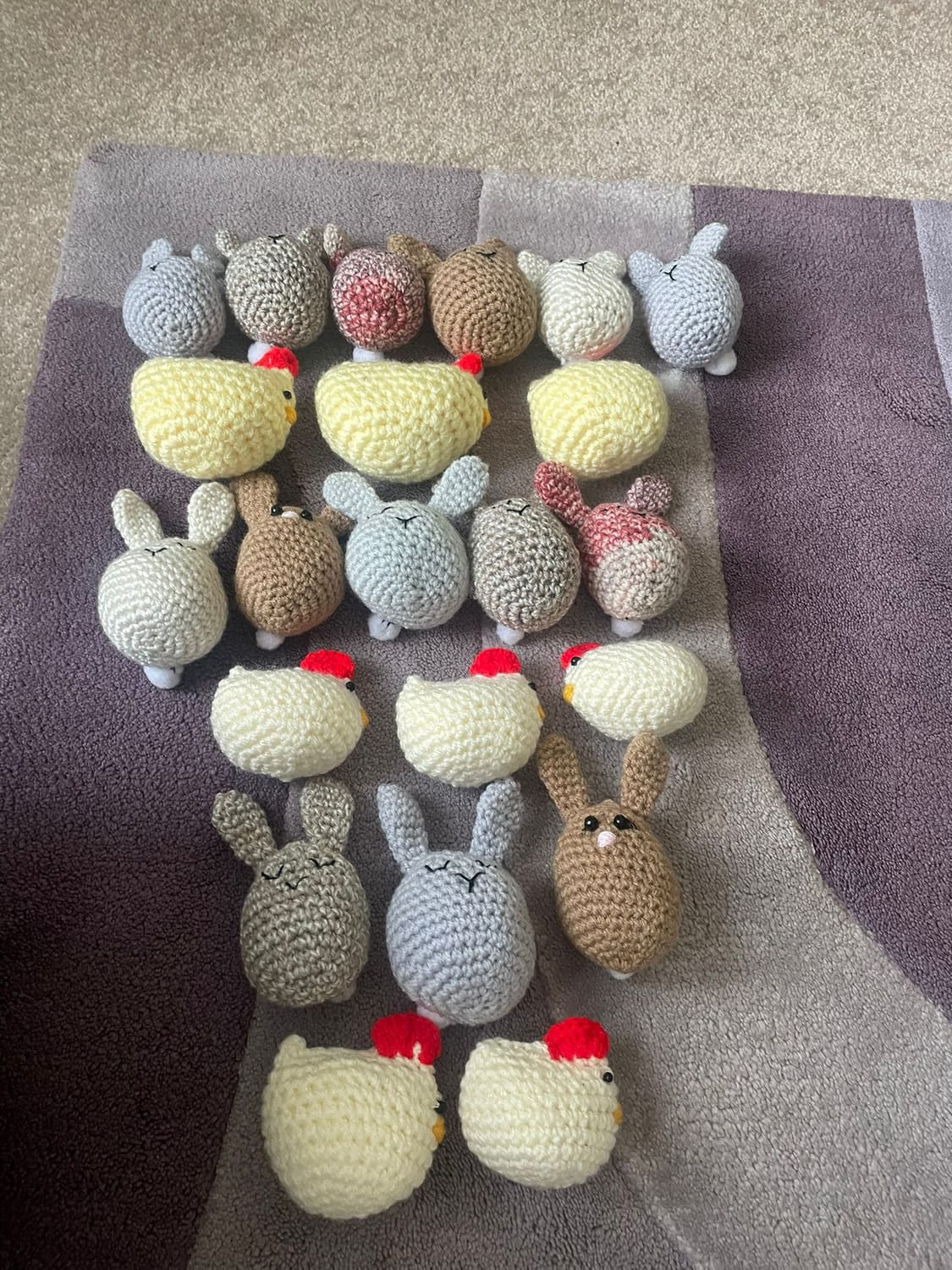 Our resident Easter Hider has been out and about this morning. Hope your lucky and you get to find one of these cute and beautifully knitted chicks and rabbits. Good luck.